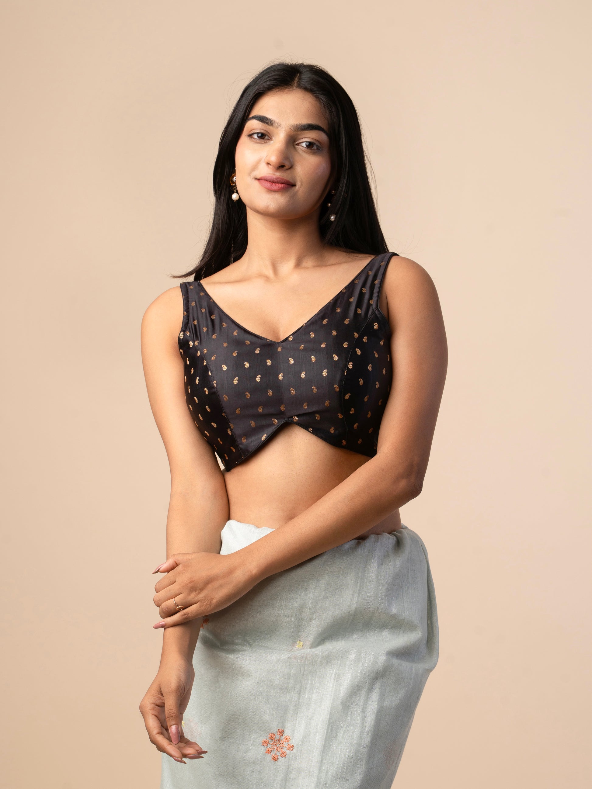 Black Banarasi Silk Blouse with Gold Zari Buti