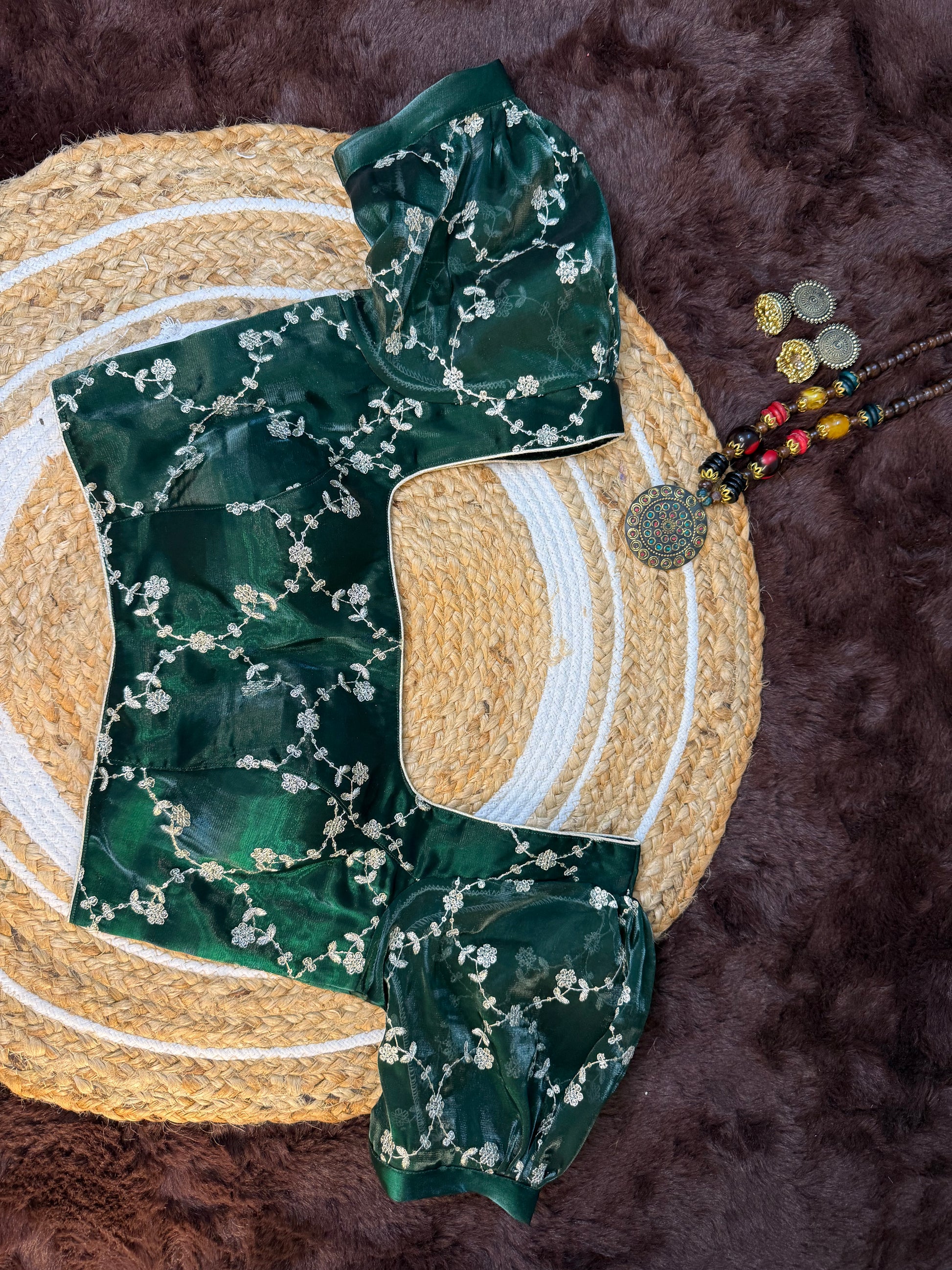 Emerald Jimmy Choo Blouse with Handwork and Puffed Sleeves
