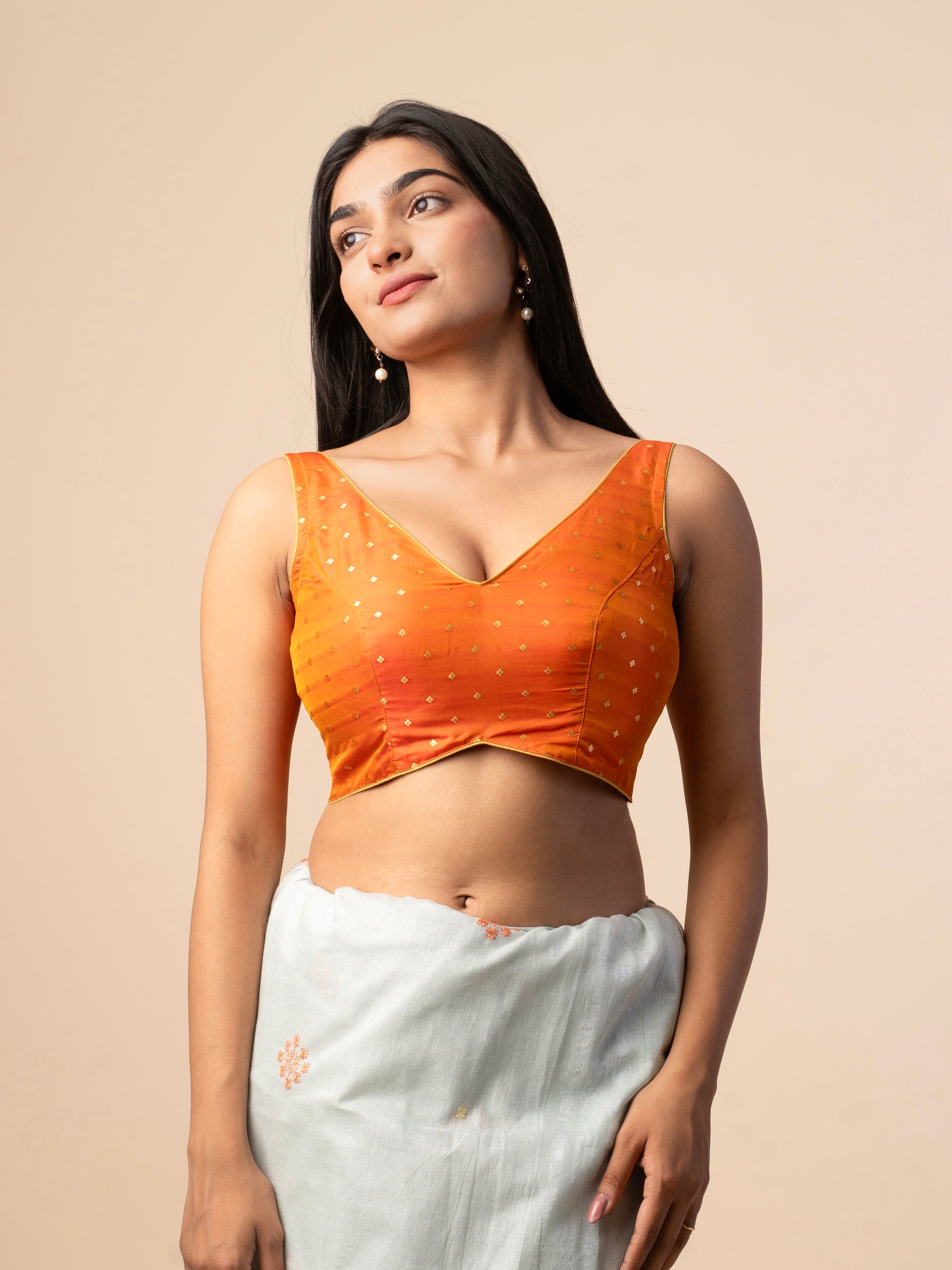 Buy Orange Silk Blouse with Gold Zari Buti Work