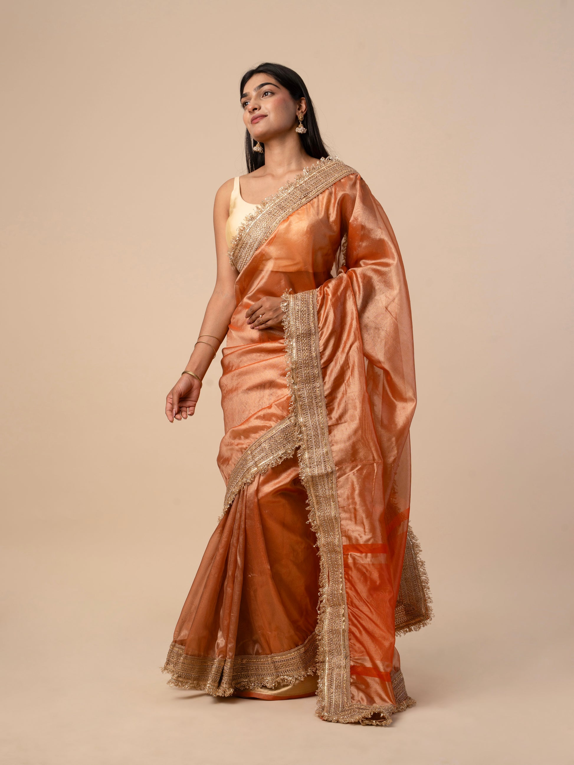 Maharani Tissue Saree with Heavy Gold Embroidered Border