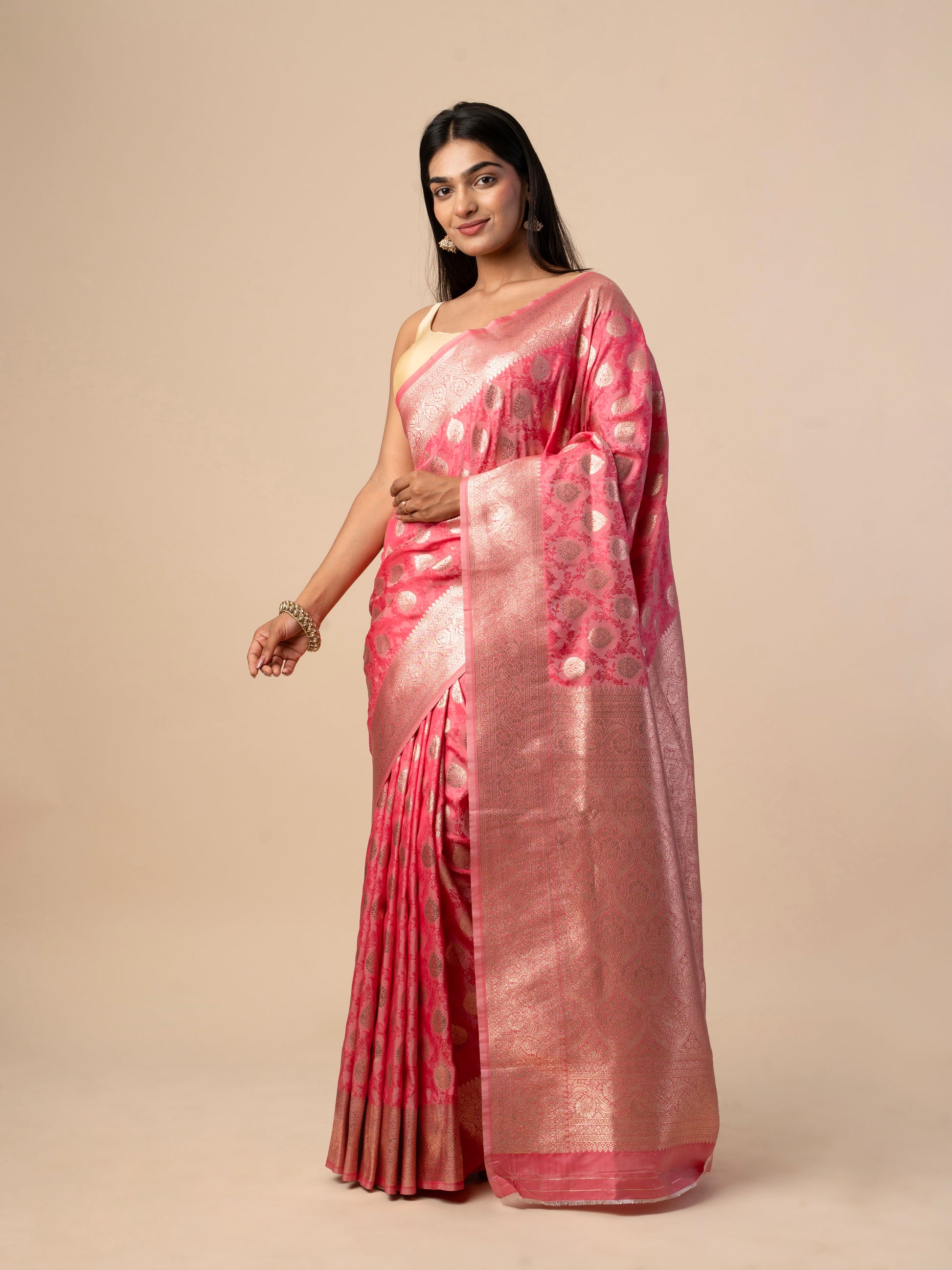 Banarasi Silk Saree with Rich Zari Woven Butis and Traditional Brocade Border