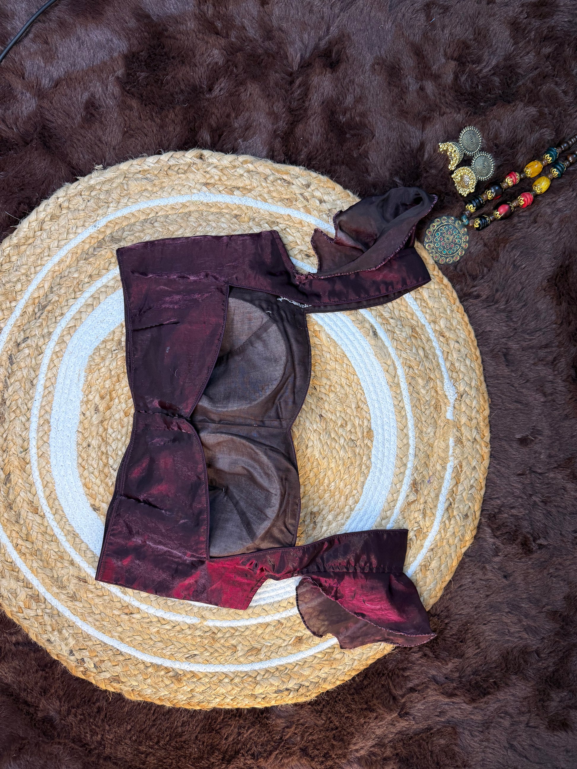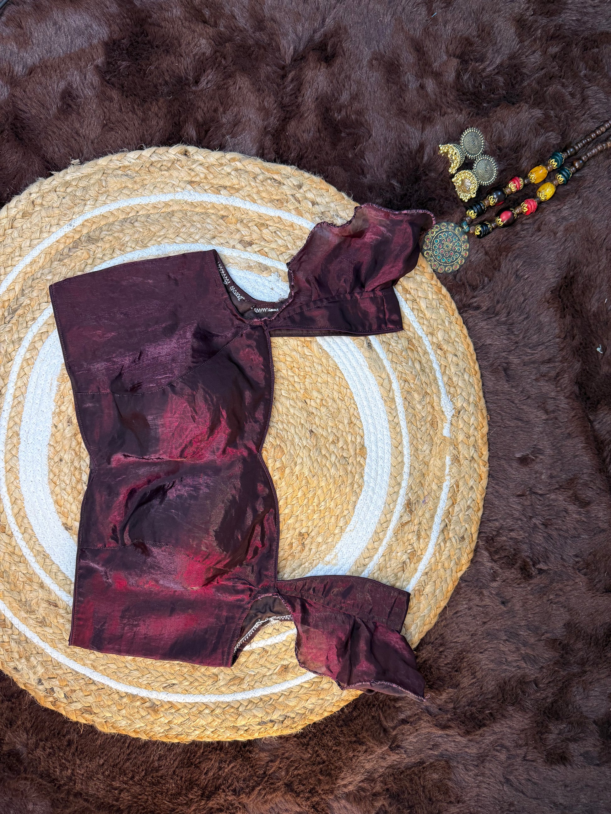 Design: Deep Wine Shade with a Chic Jimmy Choo Inspired Finish, Perfect for a Modern Ethnic or Fusion Style